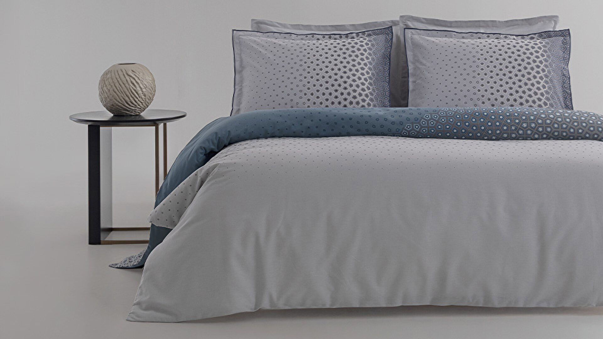 Soothing Shades of Blue Inspired by Edinburgh’s misty mornings, the Aiden Ranforce Duvet Cover Set brings serenity to bedrooms with its indigo tones.