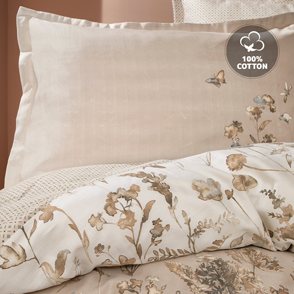 Natural Cotton Fabric Katrina Duvet Cover Set with 100% Cotton satin fabric offers a stylish look with its bright touch and elegant pattern application.