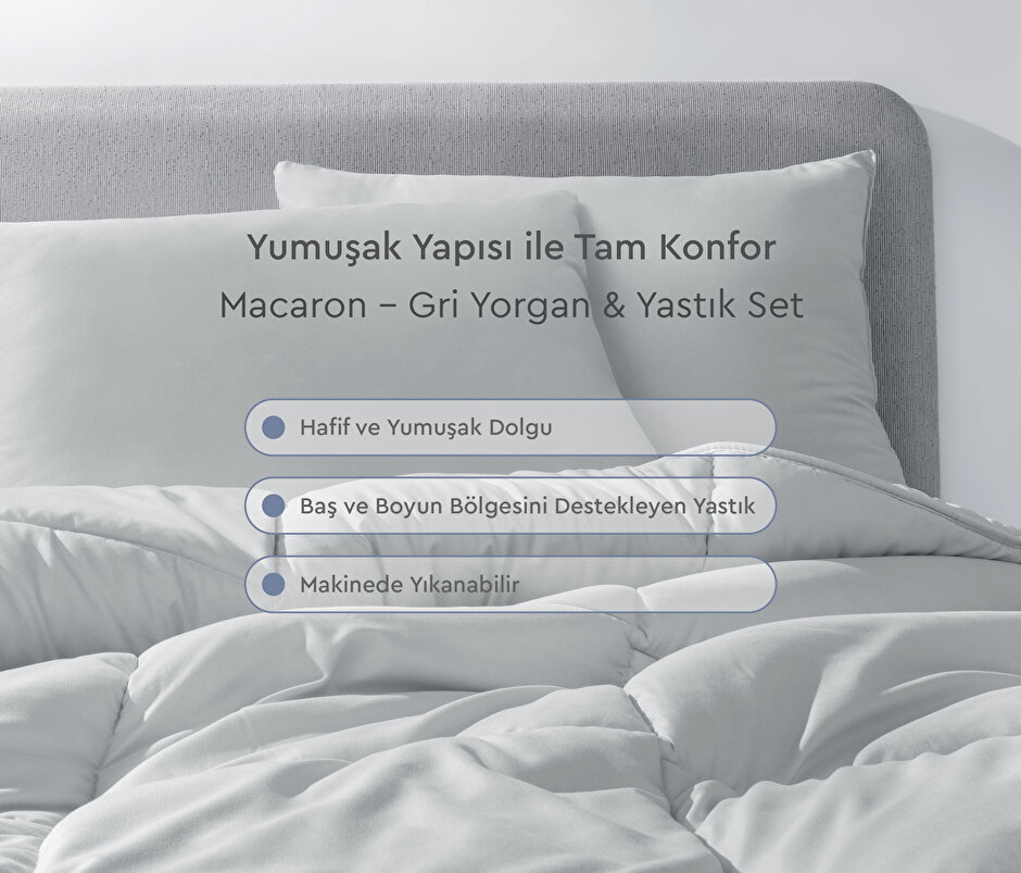 Macaron - Gri Yorgan&Yastık Set