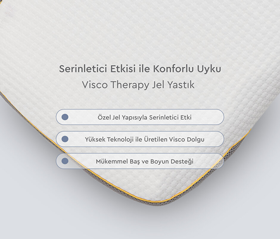 Problem yaşayan kullanıcılar için özel olarak tasarlanmış Yataş Bedding'in Visco Therapy Jel yastık modeli, serinlik ve konforu bir araya getirerek kaliteli bir uyku deneyimi hedefler.