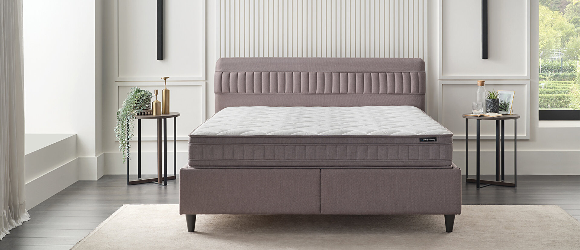 Yataş'a özel DHT Yay Sistemi ile güçlü omurga desteği sağlayan Sleep Balance Pro Yatak, minimal tasarıma sahip Somni Baza ve Nano Başlık ile fonksiyonel kullanım imkanı sağlıyor.
